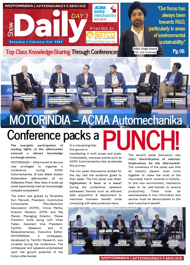 MOTORINDIA – Aftermarket & Service was privileged to organise a conference during ACMA Automechanika. It was titled: Indian Automotive aftermarket at an Inflection Point...READ MORE | |